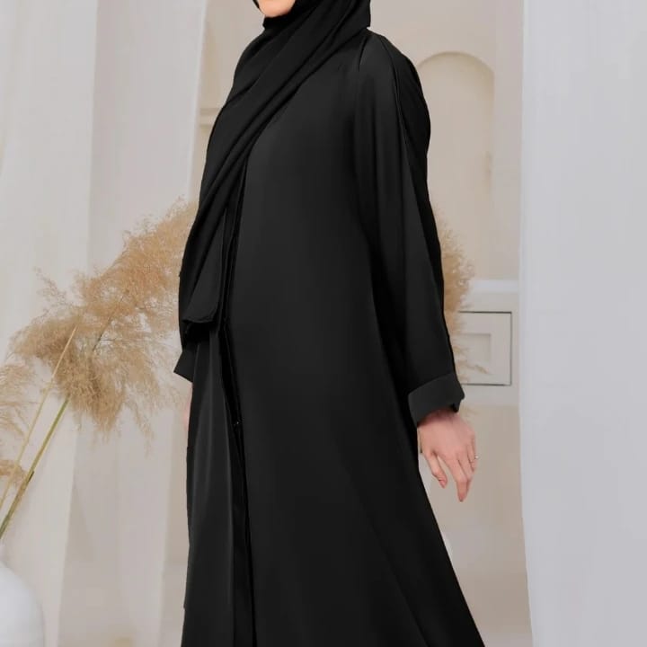 The simple yet sophisticated design makes it a versatile choice for both casual and formal wear. It comes with a matching scarf (stroller), completing your look effortlessly with a touch of grace. Whether you’re heading out for daily wear, social gatherings, or special occasions, this abaya delivers both style and comfort.