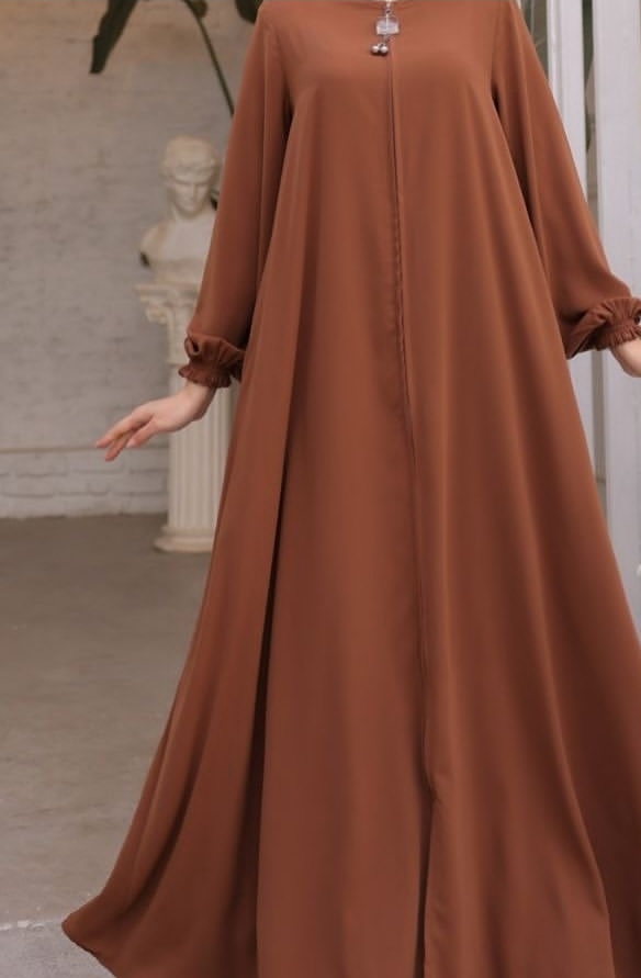 Elegant soft georgette abaya designed for comfort and style. Lightweight, breathable, and flowy fabric with a matching scarf included. Perfect for daily wear and special occasions. Available in brown, black, and aqua shades.
