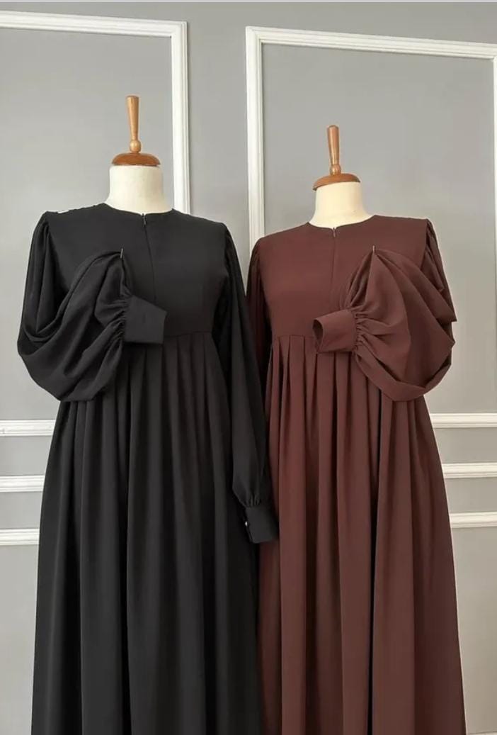 This Abaya comes with a matching stroller (scarf), giving a complete and coordinated elegant look. The available colors include black and brown, both offering a classic and versatile style suitable for any wardrobe.